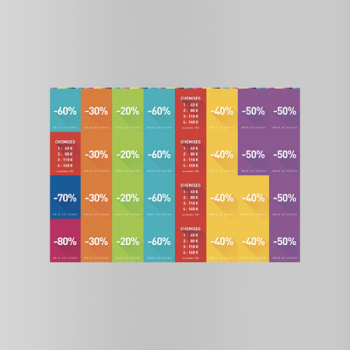 Impression de petites PLV multiples sur de grandes planches avec découpe sur mesure à deviser sur papier au choix.
