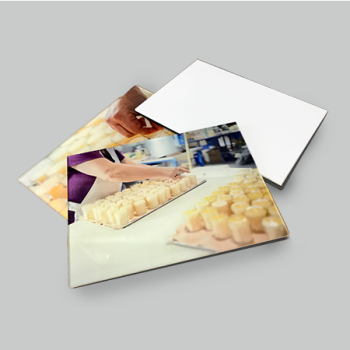 Impression sur de nombreux supports rigides résistants au choix de 5x5cm à 150x300cm. Options de forme sur mesure et accessoires. À l'unité ou en série.